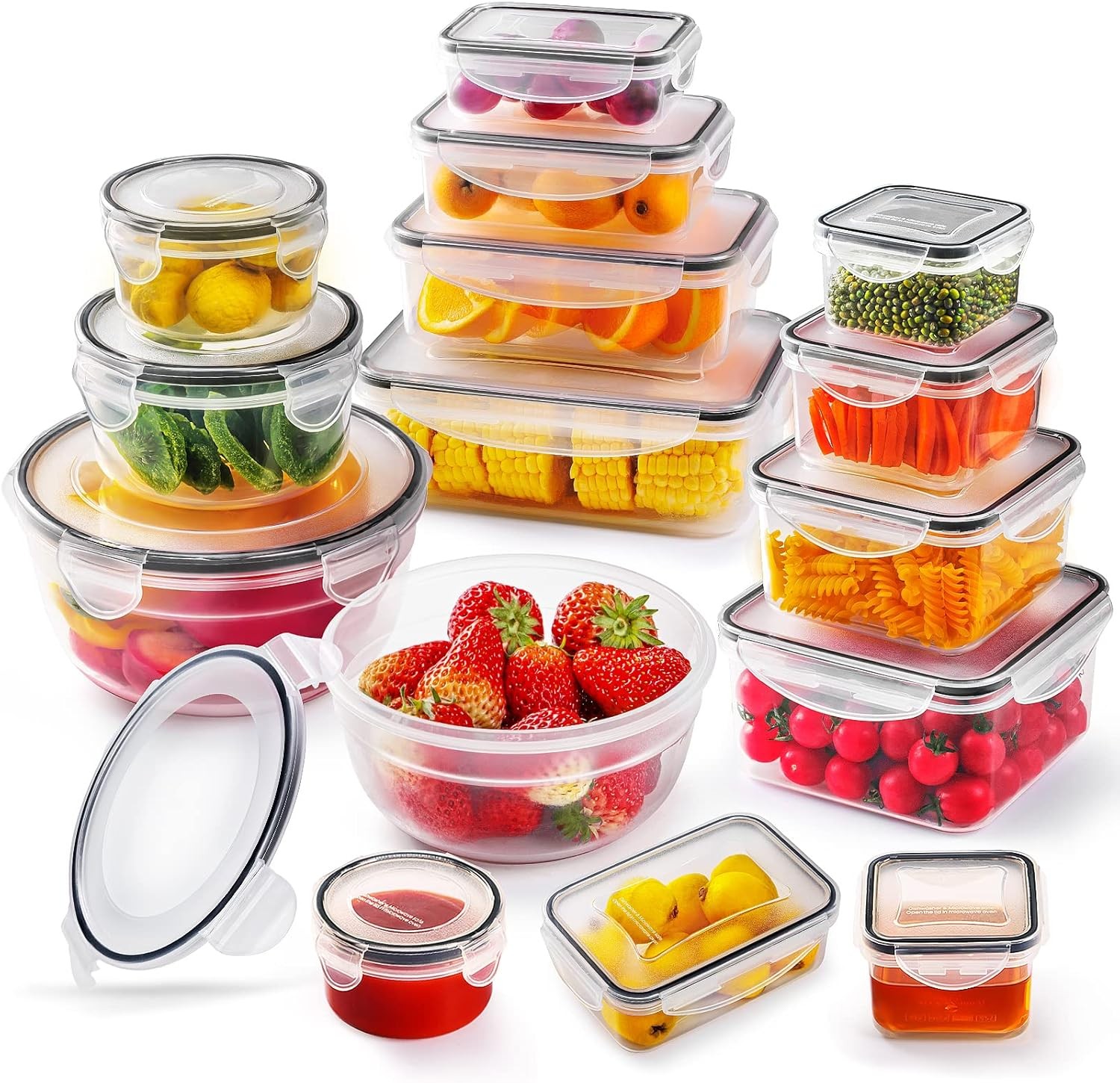 30 PCS Food Storage Containers with Lids(15 Tubs & 15 Lids) Airtight Plastic Me