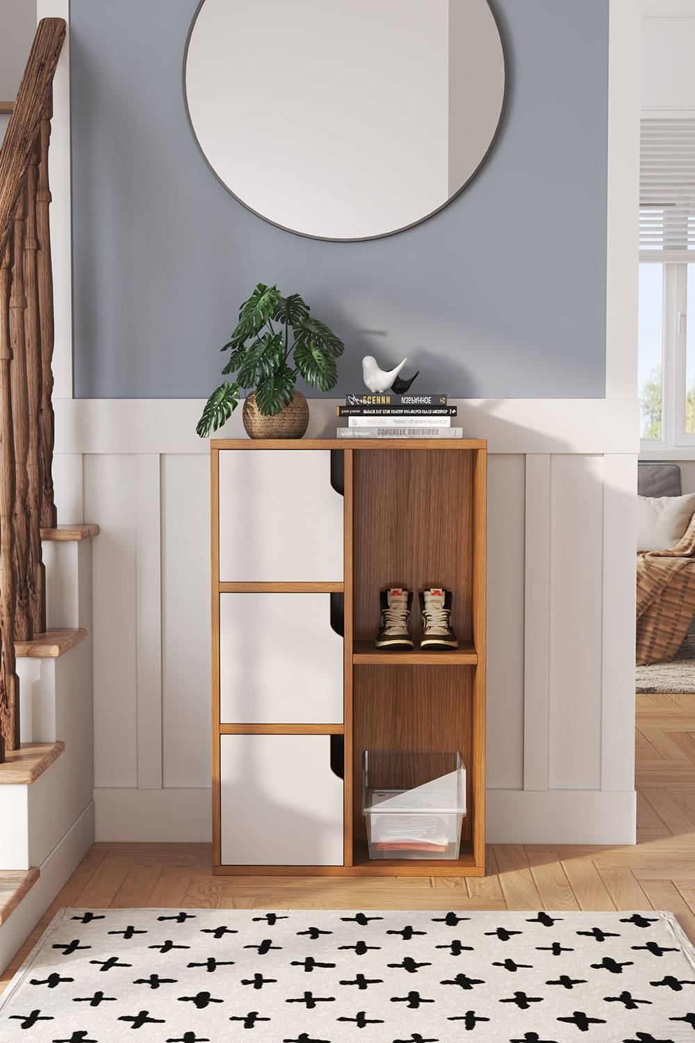 Hallowood Furniture Clifton Off White Small Cupboard with 2 Adjustable Shelves and 1 Door, Light Oak Top Wooden Shoe Cabinet for Hallway, Storage Unit for Living Room or Kitchen, Bathroom Furniture
