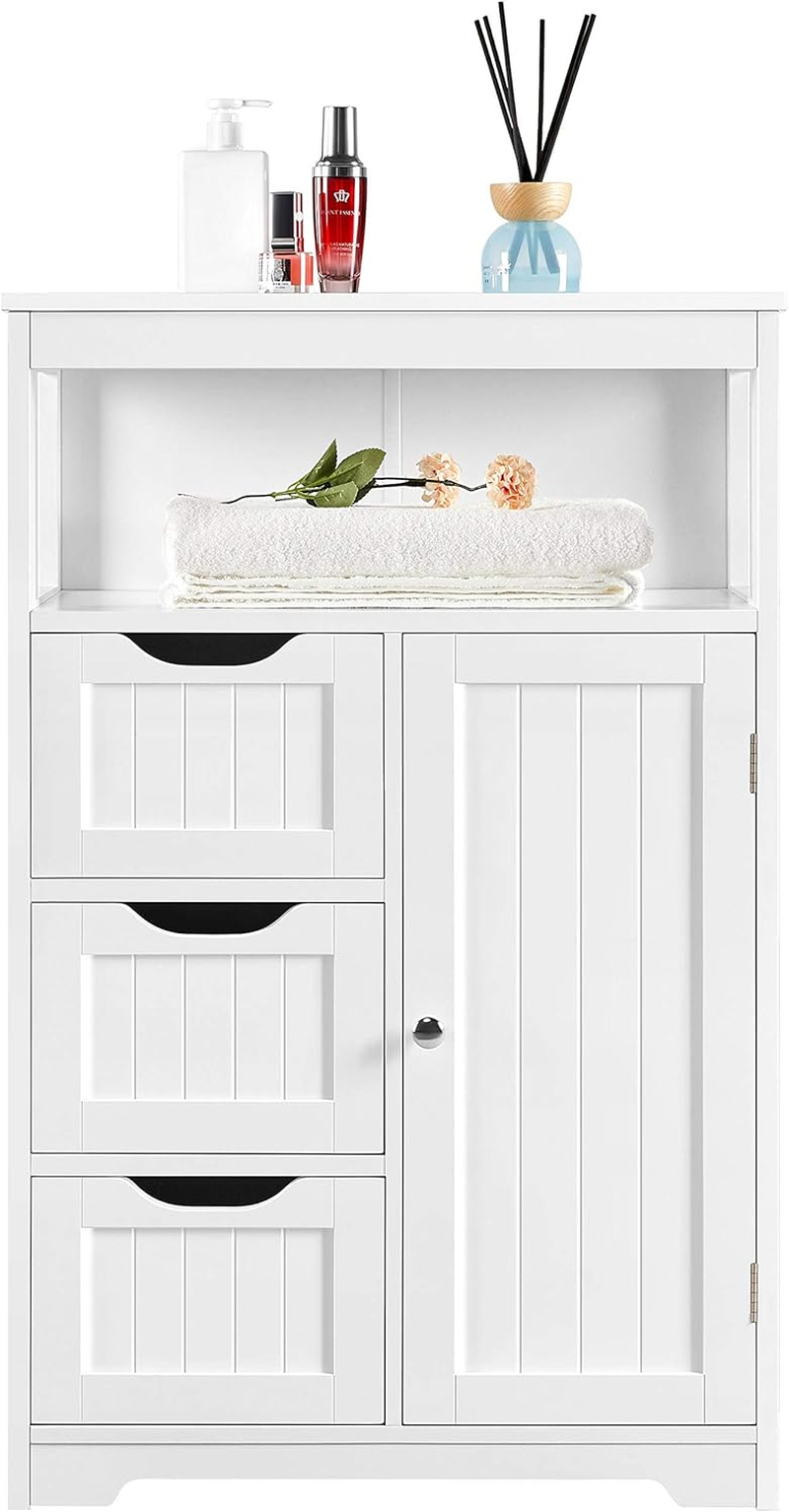 Yaheetech Bathroom Storage Units with Open Storage Shelf Free-standing Floor Cabinets Sideboard with 3 Drawers and 1 Door, Adjustable Shelf for Living Room Kitchen Entryway White