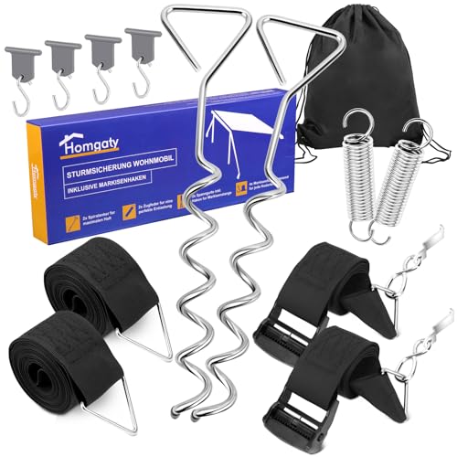 Homgaty Awning Tie Down Kit Storm Straps, 7.5M Universal Caravan Awning Storm Straps Kit, Heavy Duty Secure Fit Acessories and Parts for Caravan Motorhome, Campervan, Air Awning, Tent
