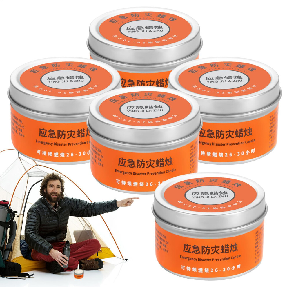Survival Candle Set of 5 Smokeless Storm Candles Slow-Burning Portable Camping Gear for Wilderness Tent Lighting