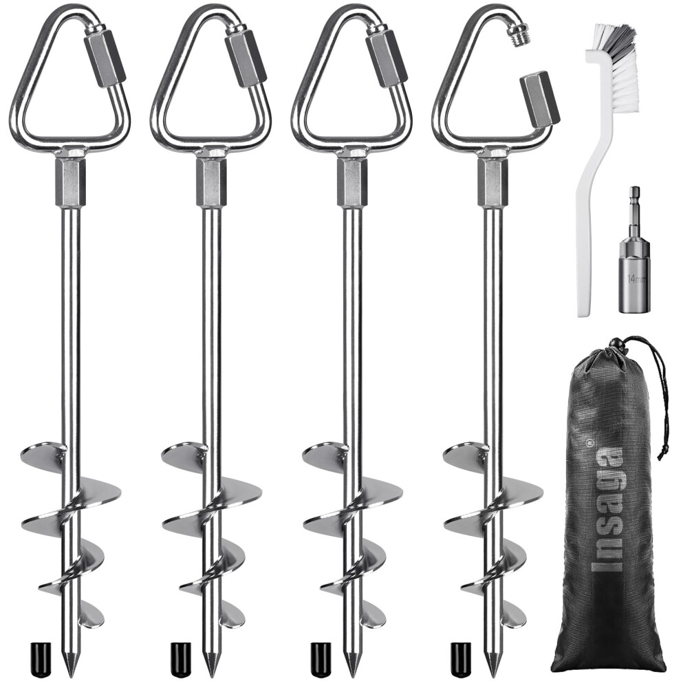 Insaga Ground Anchor, 4pcs Heavy Duty Tent Peg Trampoline Earth Stake Strong Storm Spiral Screw Spike for Garden Swing/Camping/Canopy/Shed/Dog/Carport