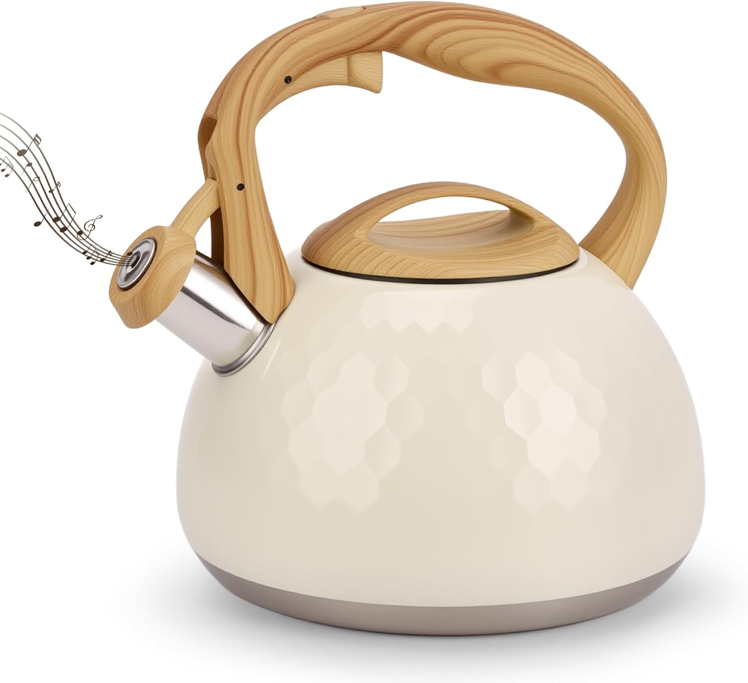 Stove Top Kettle, 2.7 Quart Whistling Kettle for Gas Hob with Wood Pattern Hand