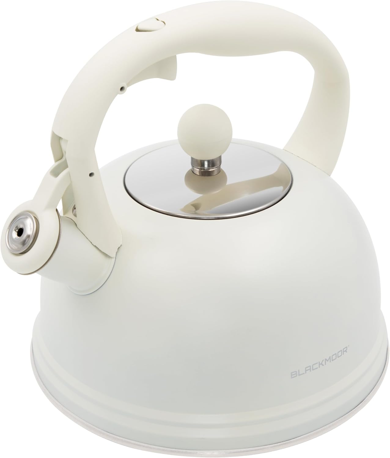 KitchenCraft Lovello Textured Induction-Safe Stove-Top Whistling Kettle, 2.5 L (.5 gal) - Ice White
