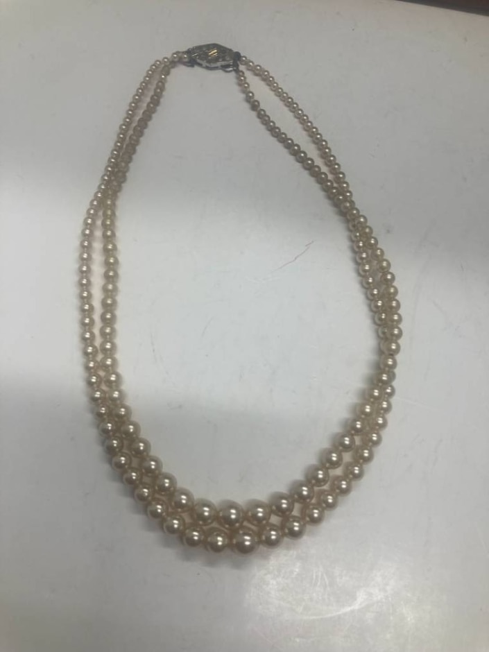 Vintage Pompadour Faux Pearl Double Stranded Necklace In Original Box