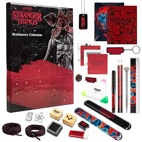 Stranger Things Advent Calendar 2025 Stationery and Accessories Christmas Countdown Calendar with Necklace Keyring Pen Snap Bracelets Stamps