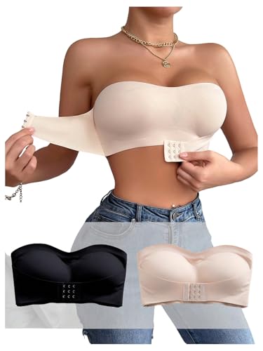 GORGLITTER Women's Strapless Bandeau Bras Wireless Push Up Front Fastening Bra Seamless Bralettes 2 Packs Black Multicolor Medium