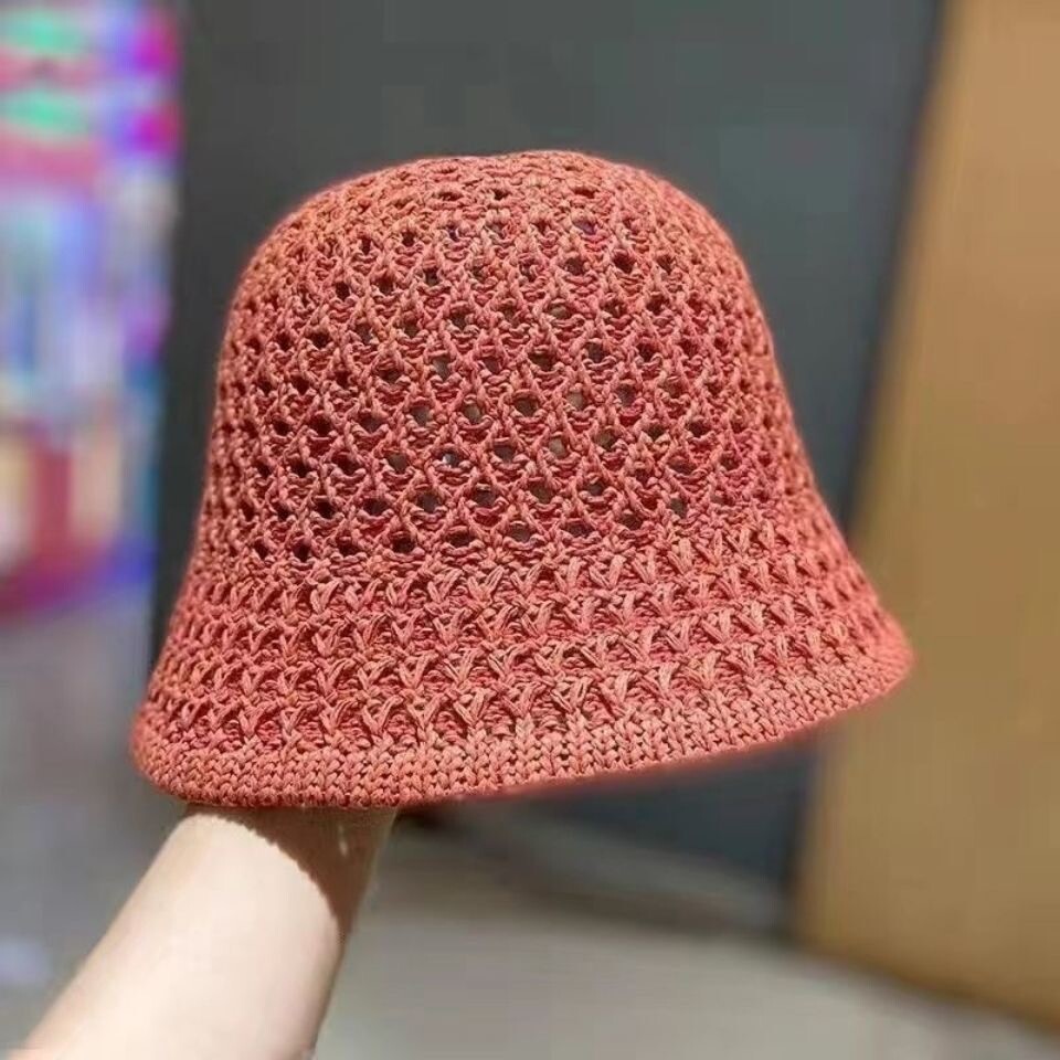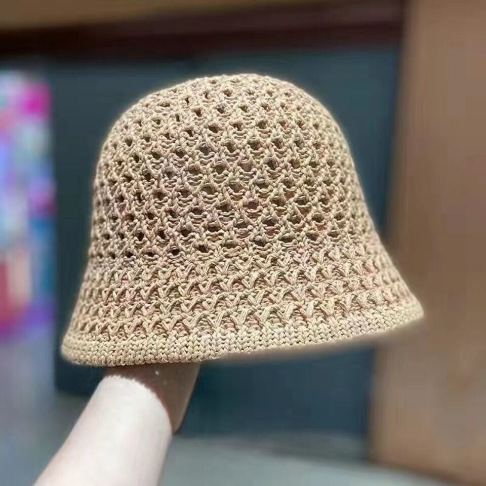 Summer Women Ladies Crochet Sun Hat Foldable Bucket Straw Hat Floppy Beach Caps