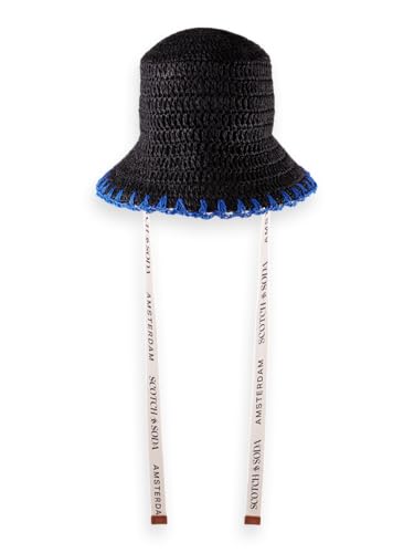 Scotch & Soda Women's Straw Bucket hat Sun, Black, One Size