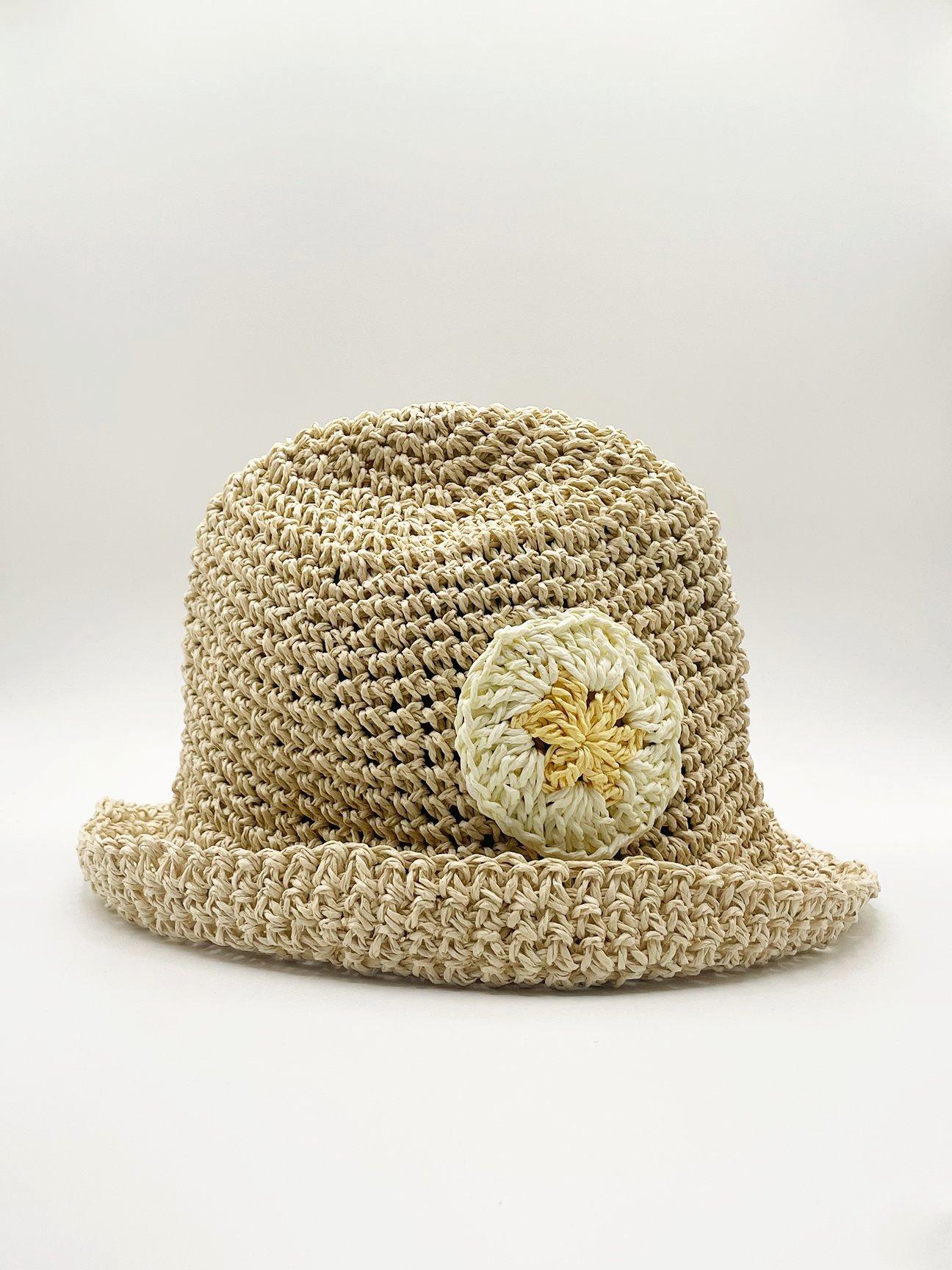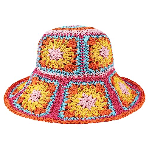 EINSKEY Women's Crochet Bucket Hat, Faux Straw Weaving Sun Hat Packable Mesh Wo