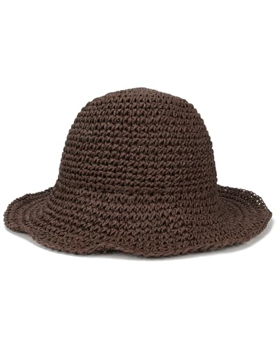 Voilipex Floppy Straw Sun Hat Foldable Packable Wide Brim Summer Beach Hat Crochet Bucket Hat for Women, Coffee, One Size