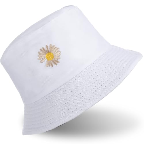 Bucket Hat Summer Reversible Hat Travel Straw Fisherman Wide Brim Travel Bucket Sun Protection Headwear Beach Summer Spring Costume Vacation Clothing Cap (White)