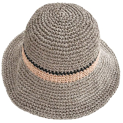 KXF Women's Sun Hat Foldable Packable Up Brim Bucket Cap Floppy Straw Sunhat for Holiday Summer Beach Hiking, Adjustable Fit, Grey