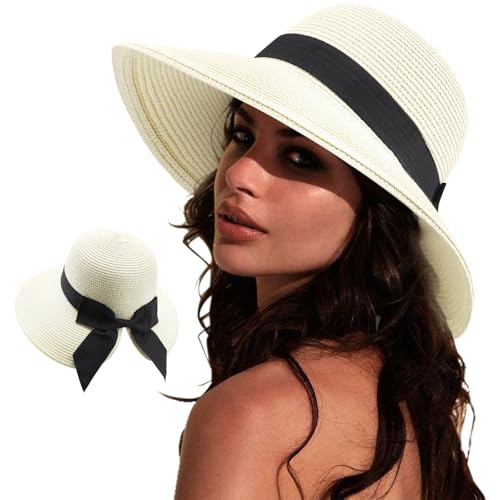Liummrcy Straw Hats for Women, Breathable Wide Brim Sun Hat, Foldable Packable Bucket Cap for Beach Travel