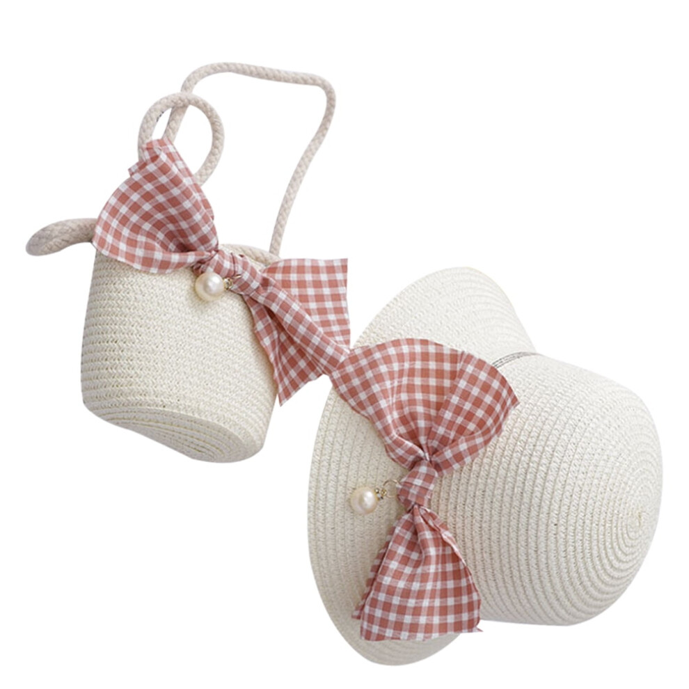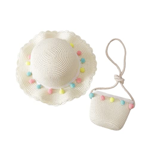 YSJNHX Girls Straw Hat Straw Cap Beach Bag Beach Accessories Boys and Girls Sun Hat Portable Cap for Women White