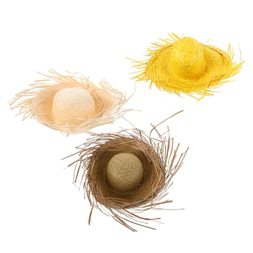 PAMINGONO 3pcs Mini Mexican Straw Hats Festical Straw Hat Sun Protection Lovely Festival Headwear for Festivals