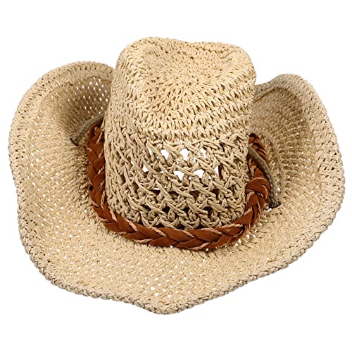 Wedhapy Straw Cowboy Hat Straw Cowboy Hats for Women Sun Protection Straw Cowgirl Hat Breathable Beach Hat Wide Brim Western Cowgirl Hat Travel Essentials for Men Women Camping, Fishing, Hiking Khaki