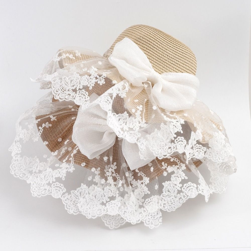 Straw Butterfly Knot Straw Hat UV Protection Beach Hat Outdoor