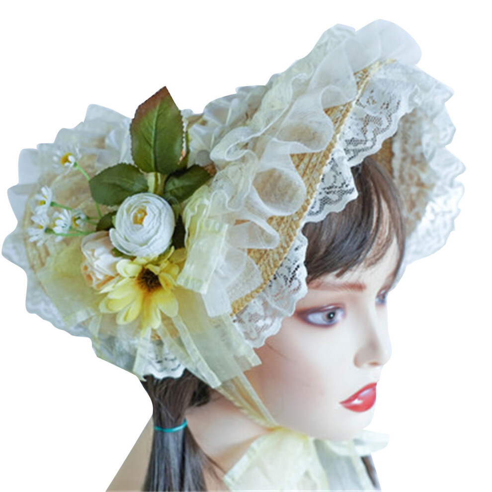 Teas Party Sun Hat Flower Straw Hat Lolit Straw Hat Victorian Bonnet Lace Fascinators For Women Victorian Headdress