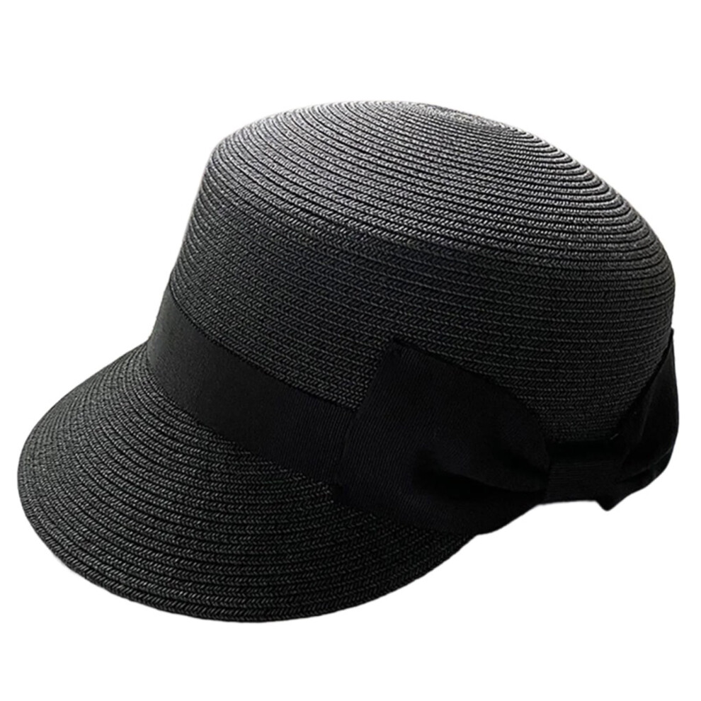 Women Summer Hat Wide Brim Beach Straw Hat Black Straw Hat