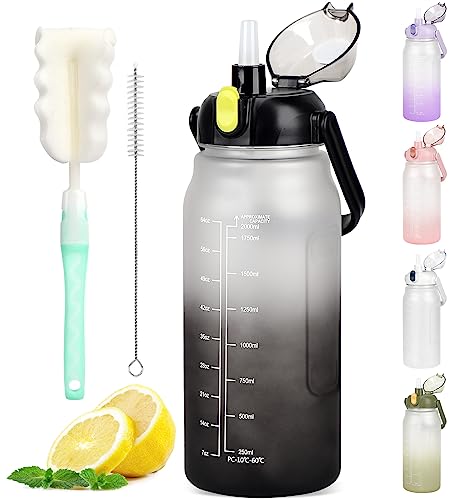 Ghopy 2L Gradient Color Water Bottle, BPA Free Drinking Bottle with Straw, Leak Proof Water Bottle with Time Markers for Kids Adults Office Gym Yoga Fitness Camping
