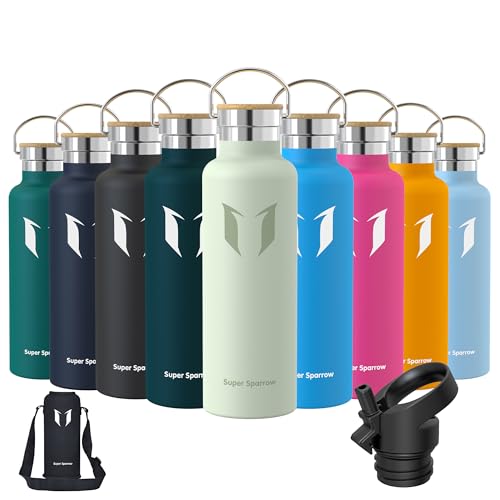 Super Sparrow Stainless Steel Water Bottle -620ml- Vacuum Insulated Metal Water Bottle - Standard Mouth Flask - BPA Free - Ideal Straw Water Bottle for Work, Gym, Travel, Sports