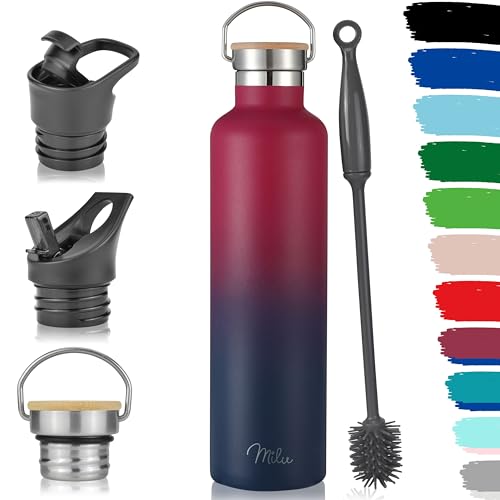 Milu Stainless Steel Drinking Bottle 350ml, 500ml, 750ml, 1l (+3 Lids) - Thermo Bottle with Straw, Water Bottle, for Hot, Cold & Carbonated Drinks (Berry Blue, 750ml)
