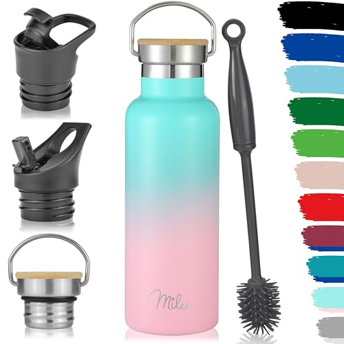 Milu Stainless Steel Drinking Bottle 350ml, 500ml, 750ml, 1l (+3 Lids) - Thermo Bottle with Straw, Water Bottle, for Hot, Cold & Carbonated Drinks (Mint Pink, 750ml)