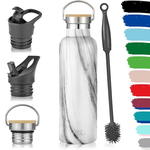 Milu Stainless Steel Drinking Bottle 350ml, 500ml, 750ml, 1l (+3 Lids) - Thermo Bottle with Straw, Water Bottle, for Hot, Cold & Carbonated Drinks (Marble, 750ml)