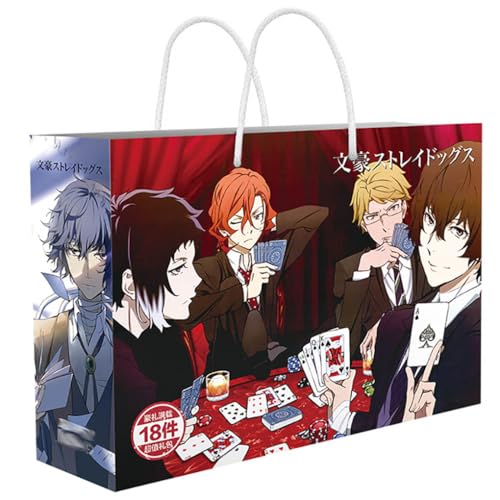 18 Bungo Strays Dogs Lucky Bag Decor | Anime Figure Acrylic Stand, Stickers, Cards, Bracelet, Curriculum, Poster, Badges, Bookmark | Bungo Strays Dogs Merch Box Set (White-1)