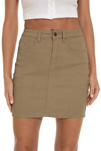 GUANYY Womens Mini Denim Skirt-Casual Stretch Slim Fit High Waisted Jean Skirts, Apricot, S