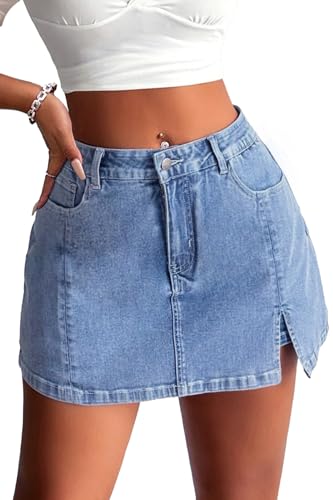 GUANYY Womens Mini Denim Skirt-Casual Stretch Slim Fit High Waisted Jean Skirts, Washed Blue, L