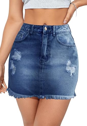Alaster Queen Women's Denim Mini Skirt Stretch Ripped High Waist Bodycon Short Pockets Jean Skirts for Women, Blue M