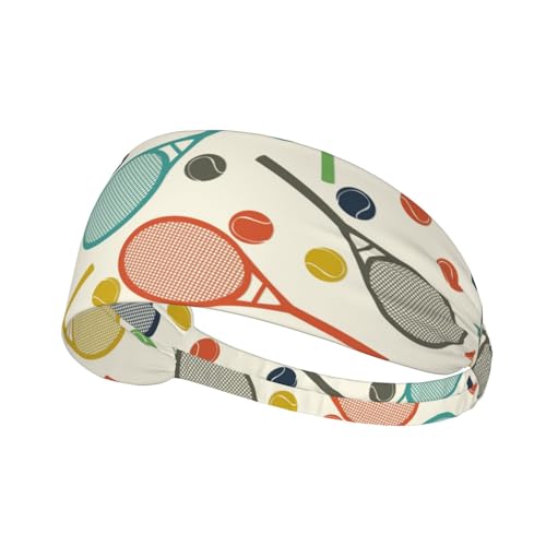 Workout Headbands for Women - Racket and Tennis Ball Stretchy Sweat Head Bands for Women Hair, Moisture Wicking Sweatband for Sports Running Athletic Yoga Gym Tennis