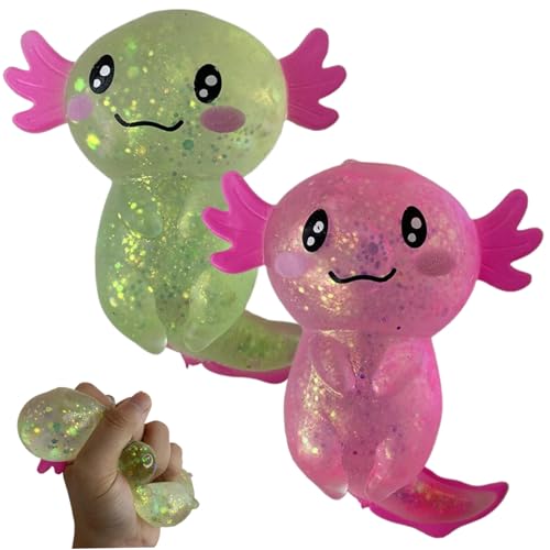 Xoeryoy Stress Toys 2Pcs Glitter Axolotl Squeeze Toys Adorable Axolotl Toy Relaxing Sensory Stress Sugar Ball Stretchy Fidget for Kids & Adults Party, Birthday Gifts