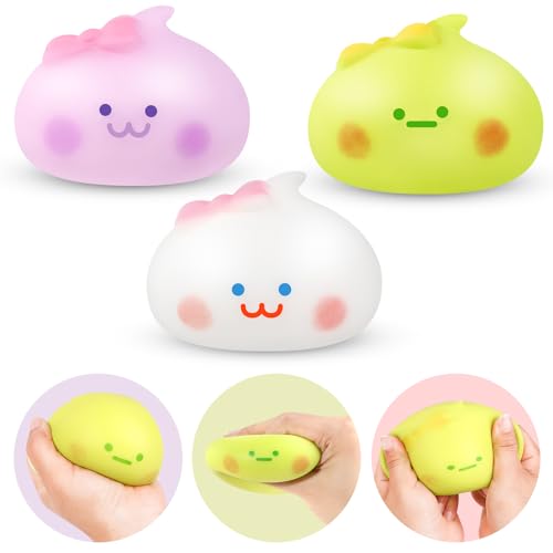 Dumpling Stress Balls Fidget Sensory Toy,Sensory Dough Balls for Anxiety ,Stretchy Fidget Ball for Anxiety Stress Relief for Kids and Adults 3PCS. (Multicolor)