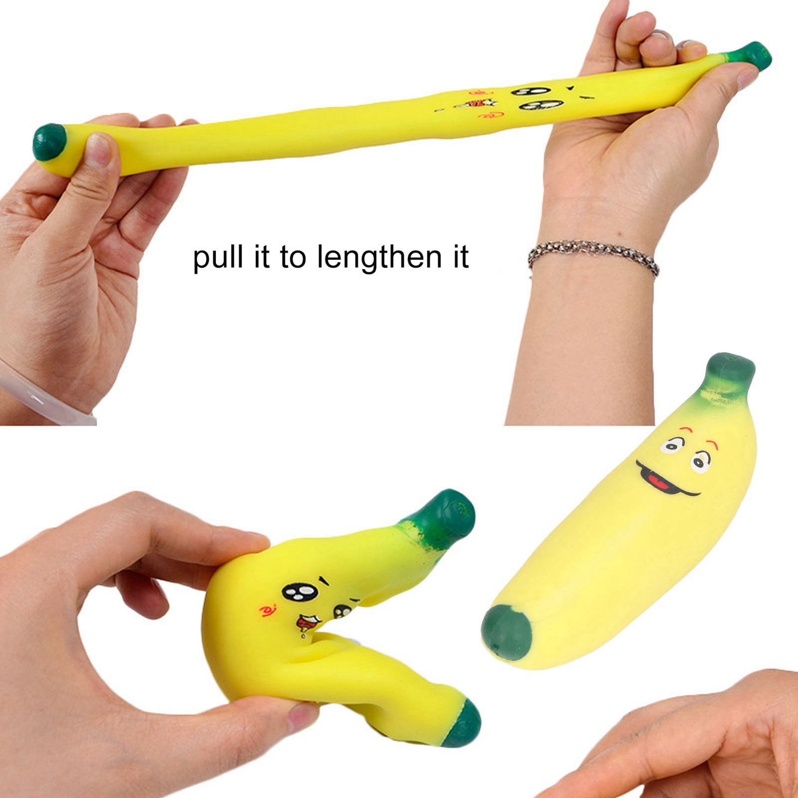 |16 Pcs Banana Stress Toy Elastic Soft Stretchy Banana Stress Ball Decompres