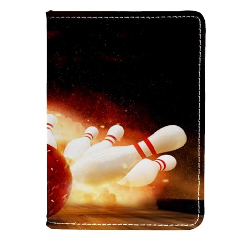 VAPOKF Bowling Ball Strike hit with Fire Passport Holder Travel Wallet Leather Card Case Cover, 11.5x16.5cm