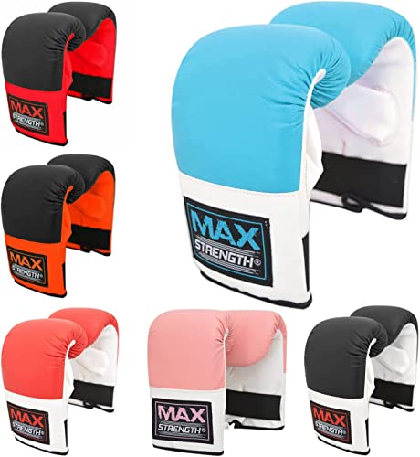 MAXSTRENGTH Bag Gloves for Heavy Punching Training, Maya Hide Leather Punch Mitts, Ideal for Focus Pads, Strike Shields, MMA, Thai pad, Double End Speed Ball (S/M, Blue/White)
