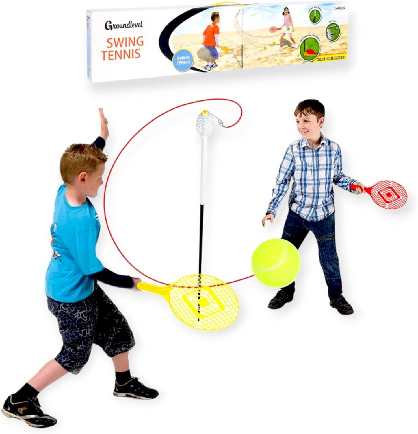 PEBBLE HUG 1 x Spin Swinging Classic Tennis Outdoor Swing Strike Racket Ball, Garden Game Set, Tennis, Suitable for Boys and Girls Aged 6years+, Two Player Entertaining Fun