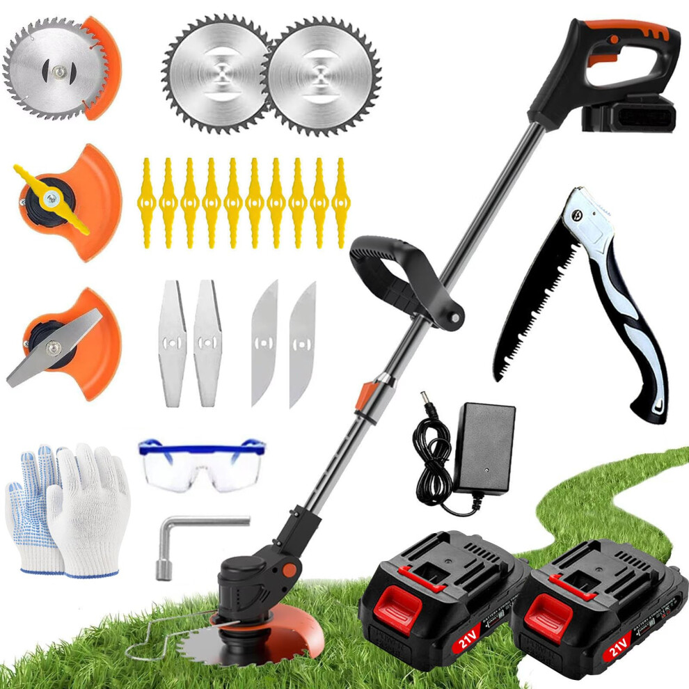 (2 Batteries) Cordless Grass Trimmer, Garden Strimmer/Edger with Battery Blades Electric Weed Cutter for Trimming Weeds Flower Trees