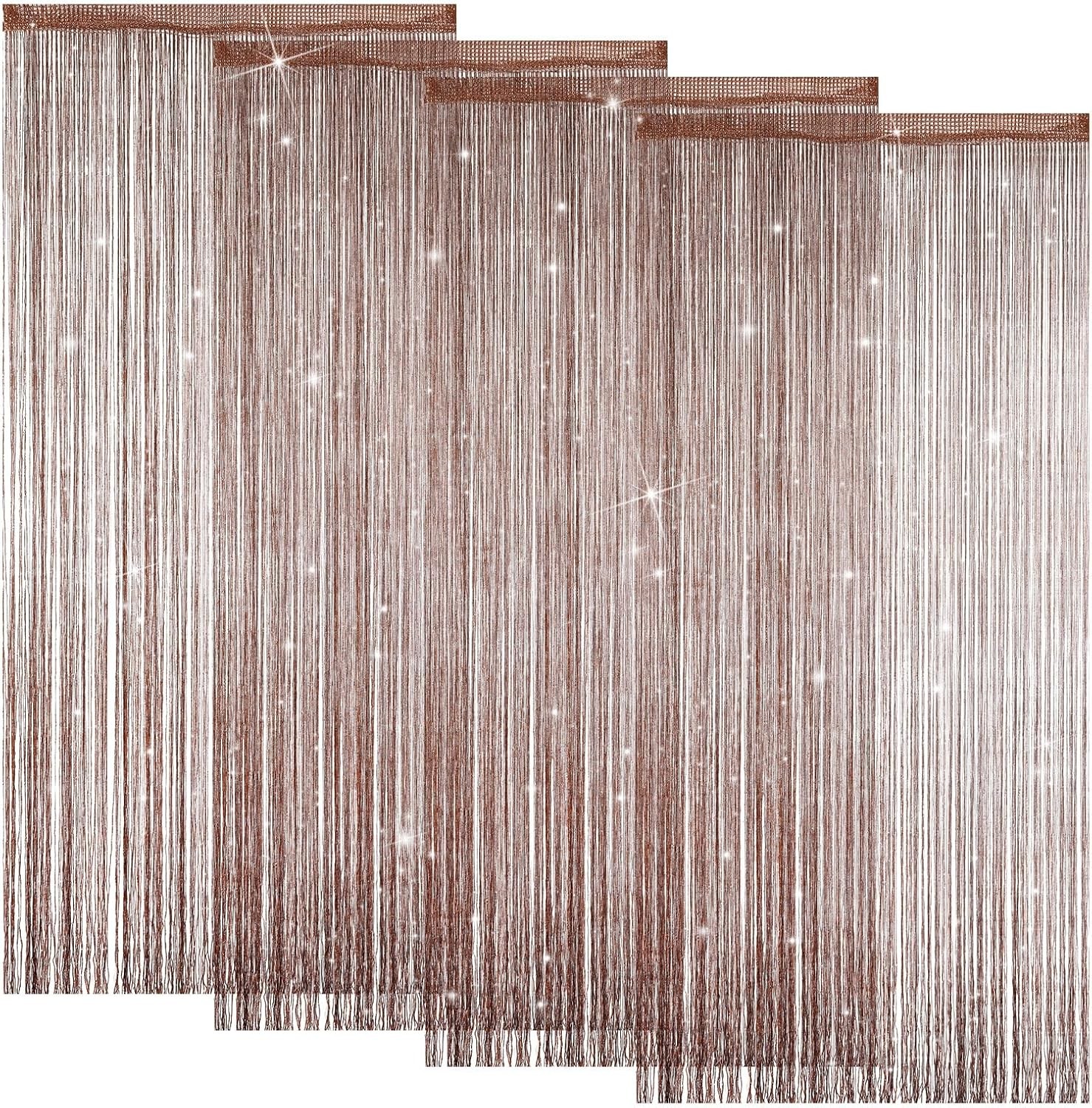 WILLBOND 4 Pieces String Curtains Glitter Fringe Curtains for Window 79 x 39 Inch Door String Curtain Divider Strip Tassel for Wedding Living Room Bathroom Coffee Shop Restaurant (Champagne)