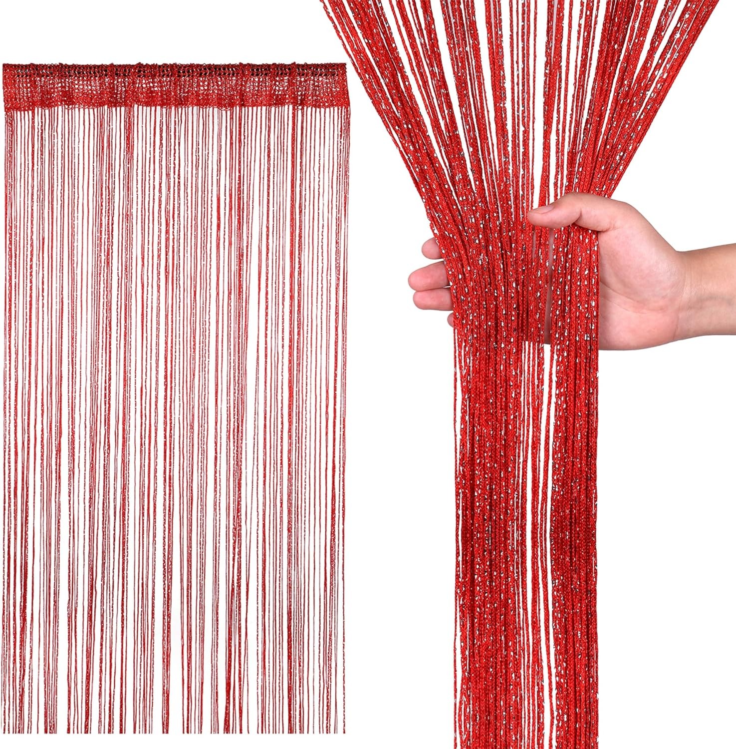 (Red) Time to Sparkle 90CM String Curtains Panel Door Fly Screen Curtain Doorways Divider for Window Decorative