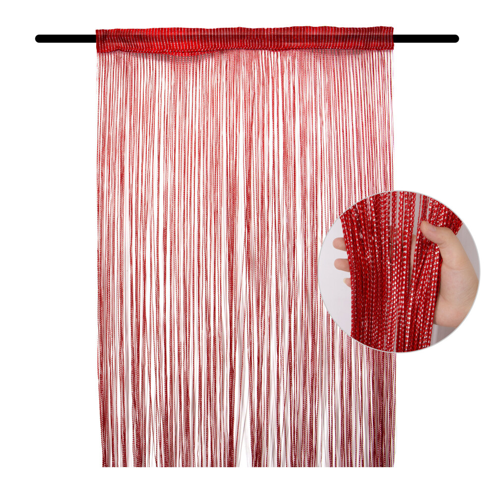 200cm x 90cm - Red - Glitter String Curtains | Fly Screen Room Divider Fringe P