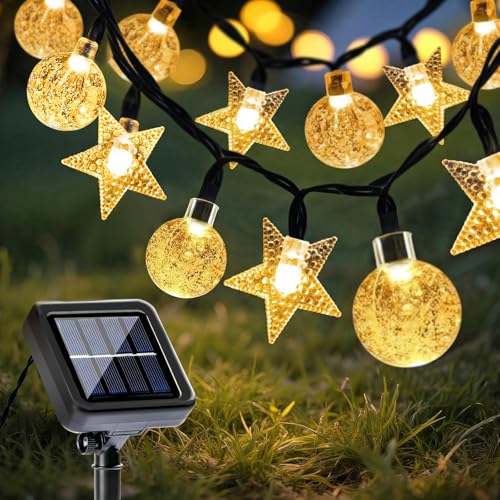 COZII Solar Lights Outdoor Garden, 60LED 10M/33Ft Solar Garden Lights String with IP65 Waterproof, 8 Modes Lighting, Crystal Ball & Stars Fairy Lights for Yard, Garden, Home, Patio(Warm White)