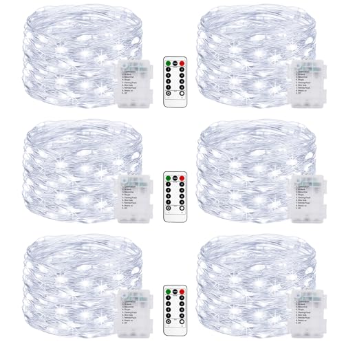 litogo 6 Pack Fairy Lights Battery Operated with Timer, 5M 50 LED Copper Wire Micro LED String Lights Indoor, Cool White Hanging Twinkle Lights for Bedroom Christmas Party Wedding DIY Decoration