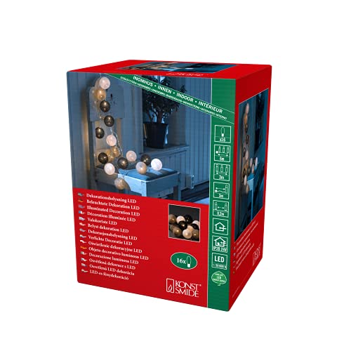 Konstsmide Fairy Lights LED String Lights Indoor 16 Cotton Ball String Lights Wedding Party Home Christmas Decoration