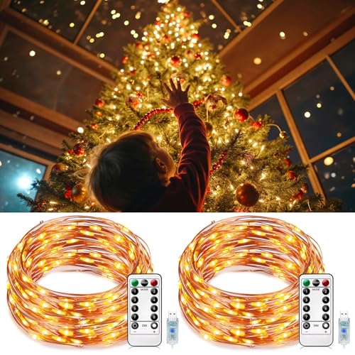 carpopo 2 Pack Fairy Lights, 10M 100 LED USB Powered String Lights with Remote 8 Modes, Copper String Lights for Indoor, Bedroom, Party, Birthday, Window Decor, Wedding (Warm White)