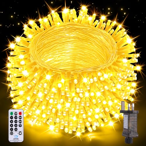 SHATCHI 500 LEDs Fairy String Lights Warm White Indoor/Outdoor Christmas Tree/Home/Party/Wedding/Garden Decorations Green Cable 8 Modes Mains Powered Memory Auto Timer