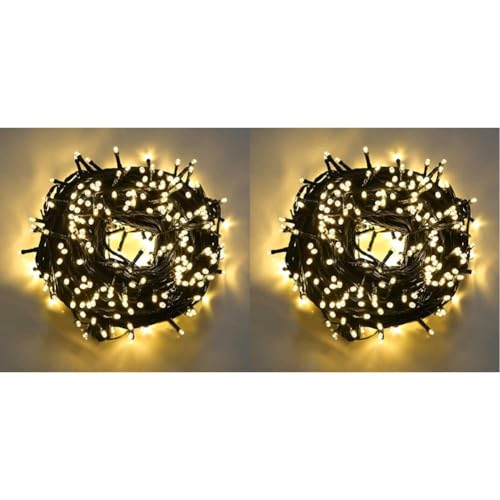 SHATCHI 100 LEDs Fairy String Lights Warm White Indoor/Outdoor Christmas Tree/Home/Party/Wedding/Garden Decorations Green Cable 8 Modes Mains Powered Memory Auto Timer (Pack of 2)